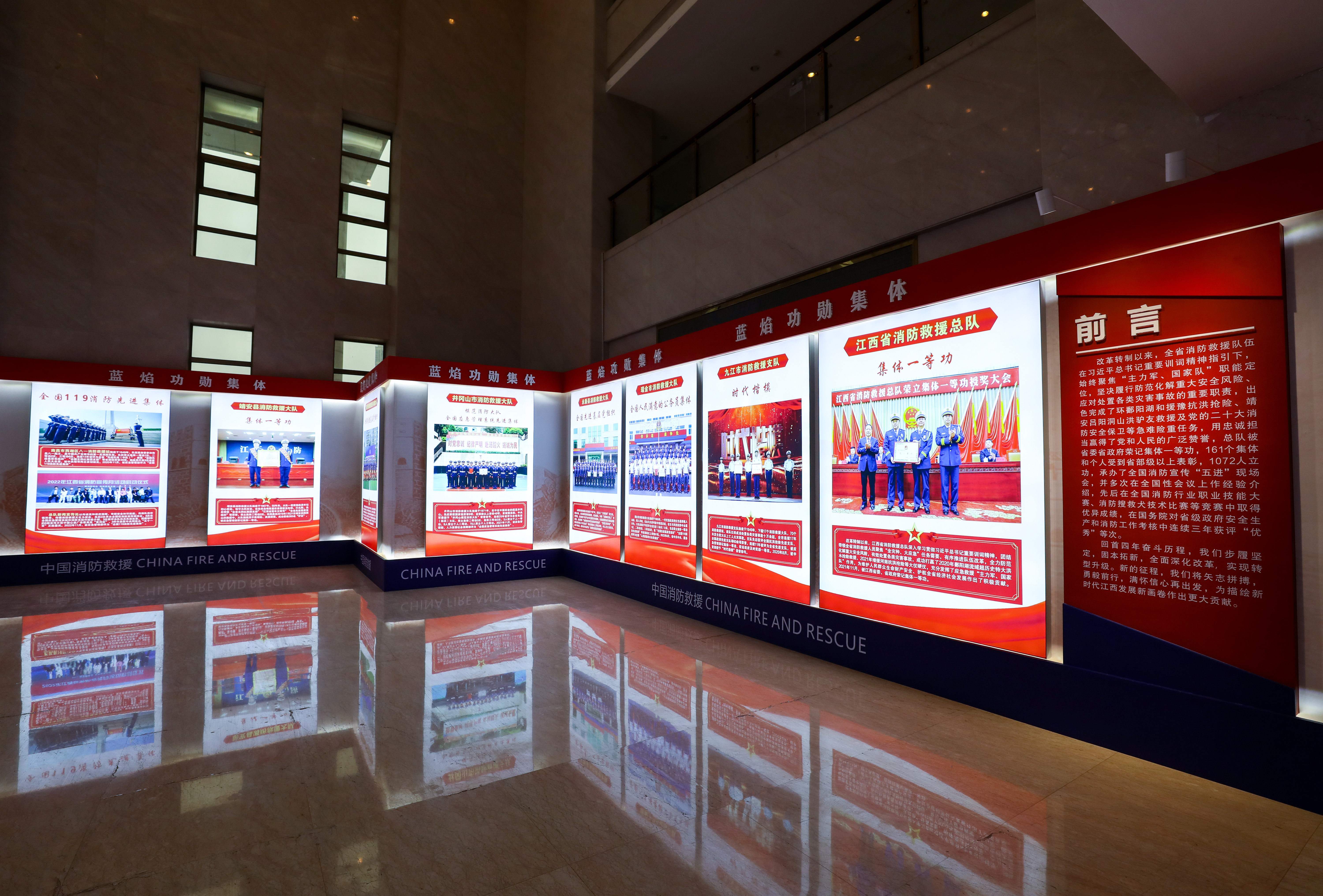 为深入学习贯彻习近平总书记重要训词精神,进一步激励广大指战员时刻牢记领袖嘱托、忠诚履行职责使命,近日,江西省消防救援总队在机关一楼大厅设计制作一批灯箱展板,集中展示改革转制四年来全省消防救援队伍重大先进典型和主要工作业绩。