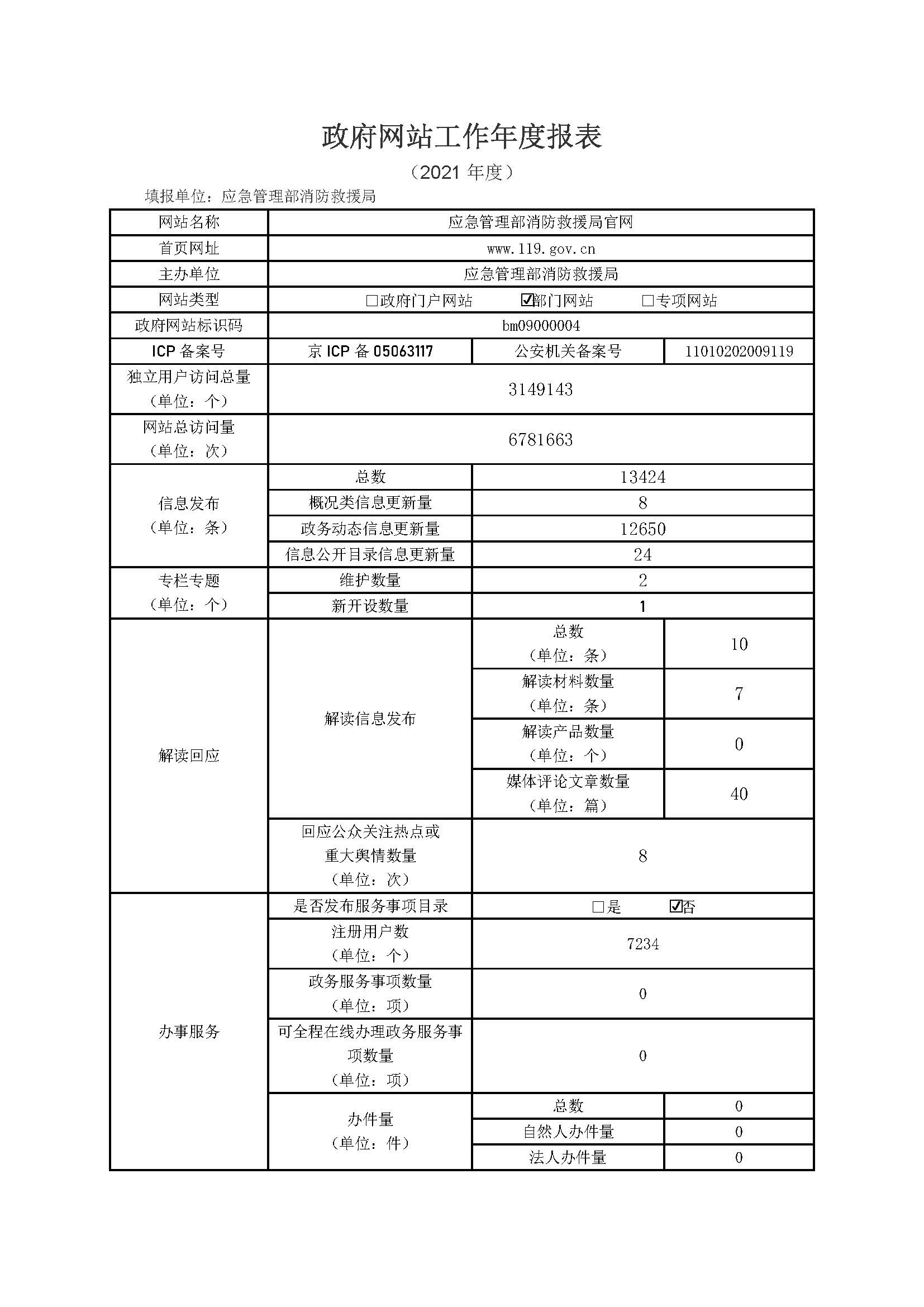 应急管理部消防救援局政府门户网站工作年度报告(2021年度)