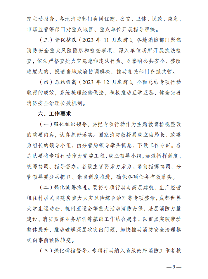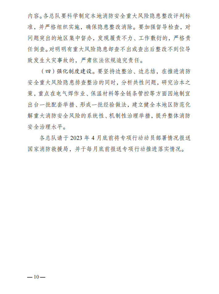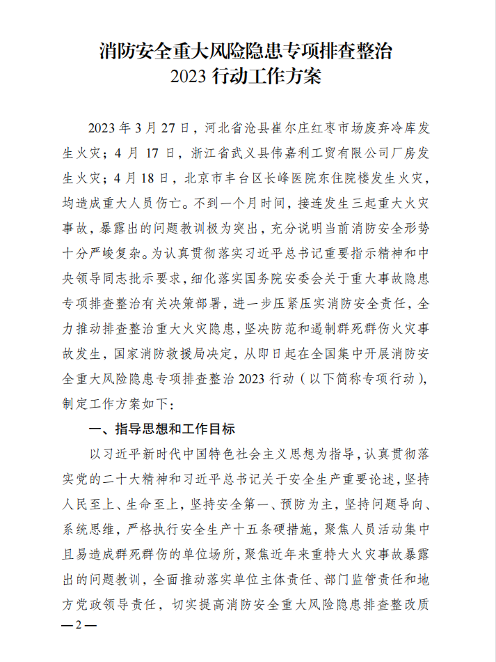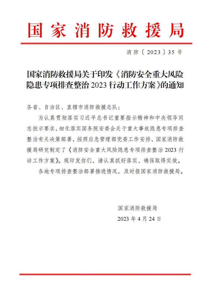 国家消防救援局关于印发《消防安全重大风险隐患专项排查整治2023行动工作方案》的通知
